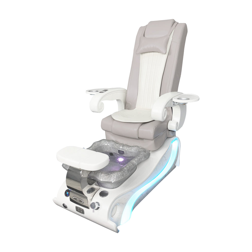 1x LUX ES450 Pedicure Chair (available color PEARL WHITE or MODERN GREY): Acetone-Resistant upholstery leather and body, built-in remote control for customer and technician, seat cover pad, Pro-Touch massage system, power seat, built-in air vent, LUX SMART magnet jet, and 3 year warranty.